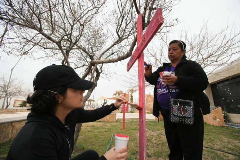 Mujeres pintan cruces en Ciudad Juárez ante epidemia de feminicidios Madres de mujeres desaparecidas y miembros de diferentes colectivos feministas acudieron al Memorial del Campo Algodonero, en la fronteriza Ciudad… 25 febrero, 2023