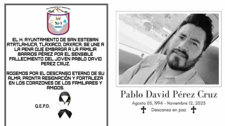 Tras cuatro días desaparecido, hallan sin vida a Tesorero de San Esteban Atatlahuca Cuatro días después de haber desaparecido, el cuerpo del tesorero municipal de San Esteban Atatlahuca fue localizado durante este domingo… 13 noviembre, 2023