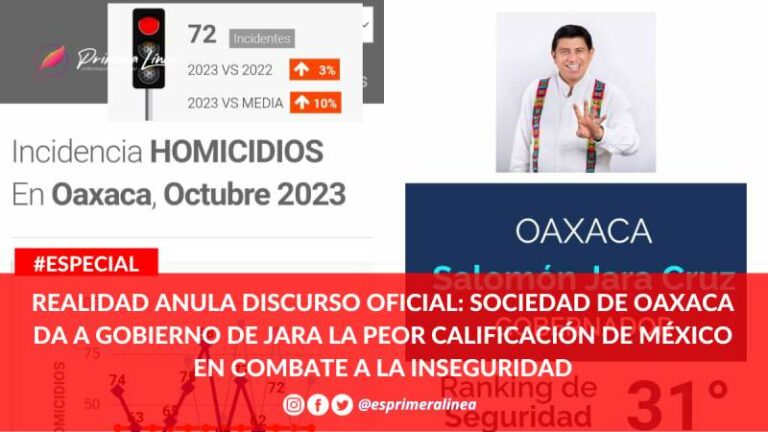 Realidad anula discurso oficial: sociedad de Oaxaca da a gobierno de Jara la peor calificación de México en combate a la inseguridad Aun con el discurso que las autoridades repiten cada semana, en el sentido de que Oaxaca es de los cinco… 5 diciembre, 2023