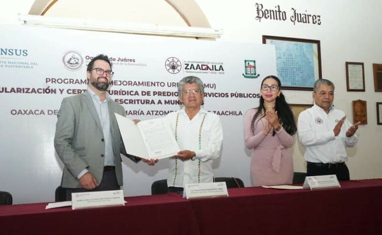 Recibe municipio de Oaxaca de Juárez escrituras de predios de servicios públicos La entrega se llevó como parte del programa de “Mejoramiento Urbano Vertiente de la Regularización y Certeza Jurídica de Predios… 4 diciembre, 2023