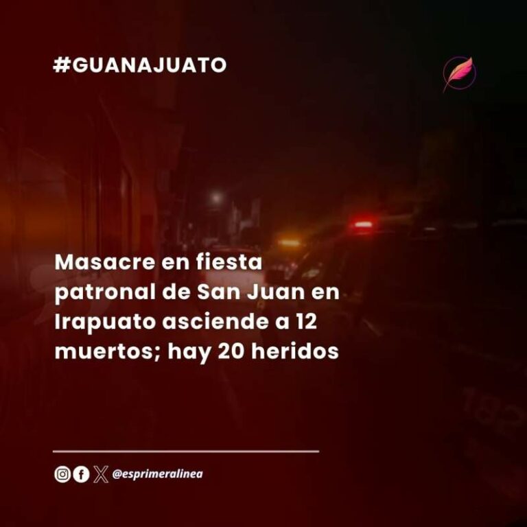 Masacre en fiesta patronal de San Juan en Irapuato asciende a 12 muertos; hay 20 heridos Un ataque armado durante la fiesta patronal de San Juan en la colonia Barrio Nuevo, Irapuato, Guanajuato, dejó 12 muertos… 25 junio, 2025