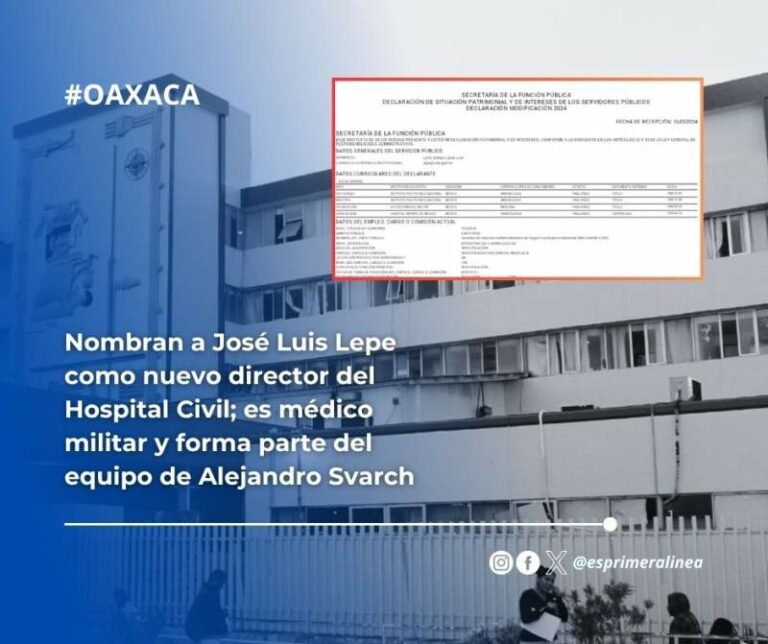 Nombran a José Luis Lepe como nuevo director del Hospital Civil; es médico militar y forma parte del equipo de Alejandro Svarch Nombran a José Luis Lepe como nuevo director del Hospital Civil; es médico militar y forma parte del equipo de… 23 junio, 2025