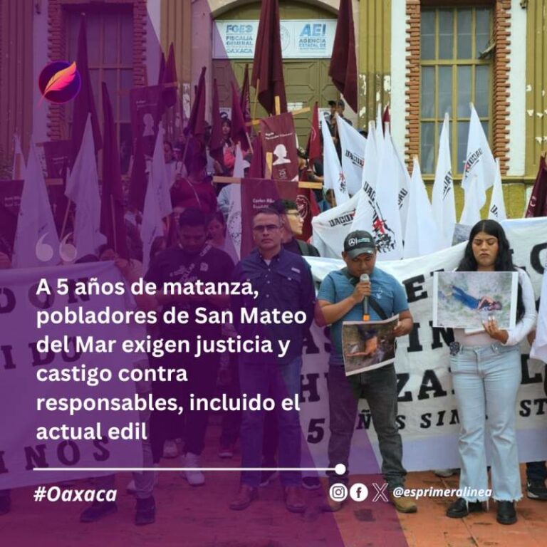 A 5 años de matanza, pobladores de San Mateo del Mar exigen justicia y castigo contra responsables, incluido el actual edil A 5 años de matanza, pobladores de San Mateo del Mar exigen justicia y castigo contra responsables, incluido el actual… 21 junio, 2025