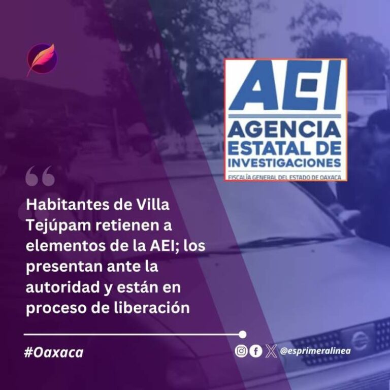 Habitantes de Villa Tejúpam retienen a elementos de la AEI; los presentan ante la autoridad y están en proceso de liberación Habitantes del municipio Villa Tejúpam de la Unión localizado en la región de la Mixteca de Oaxaca, retuvieron este día… 21 junio, 2025