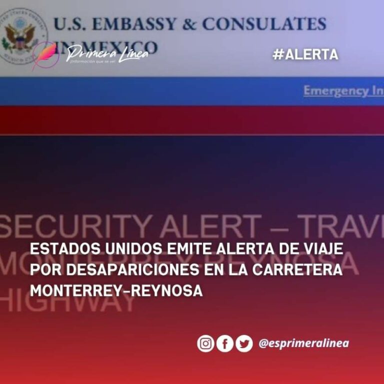 Estados Unidos emite alerta de viaje por desapariciones en la carretera Monterrey-Reynosa La Embajada de Estados Unidos en México emitió una alerta de seguridad urgente para sus ciudadanos debido a múltiples desapariciones… 20 junio, 2025