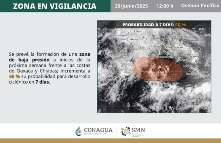 La dependencia federal indicó que el fenómeno tiene un 40 por ciento de probabilidad de evolucionar a un ciclón tropical…