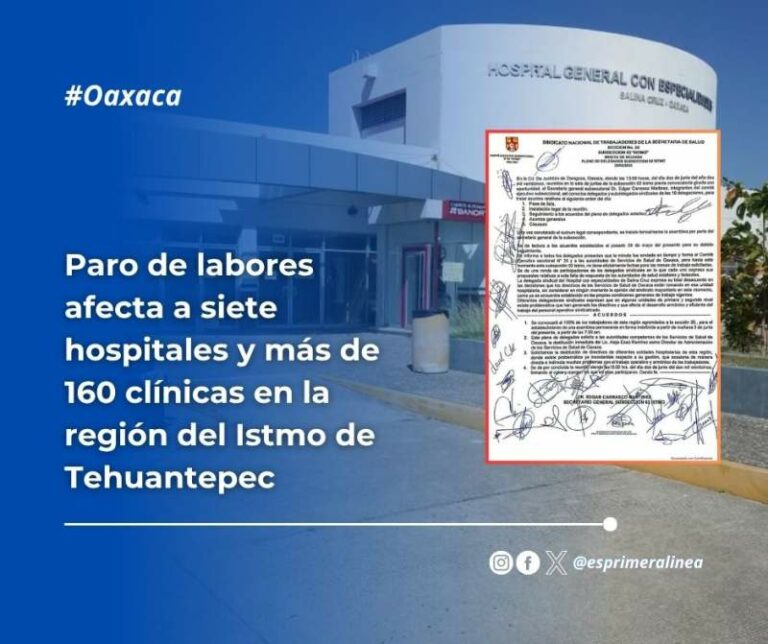 Paro de labores afecta a siete hospitales y más de 160 clínicas en la región del Istmo de Tehuantepec Paro de labores afecta a siete hospitales y más de 160 clínicas en la región del Istmo de Tehuantepec 3 junio, 2025