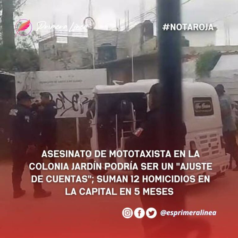 Asesinato de mototaxista en la Colonia Jardín podría ser un “ajuste de cuentas”; suman 12 homicidios en la capital en 5 meses La brutalidad del ataque, evidenciada por el número de disparos recibidos por la víctima, sugiere un posible hecho relacionado al… 3 junio, 2025