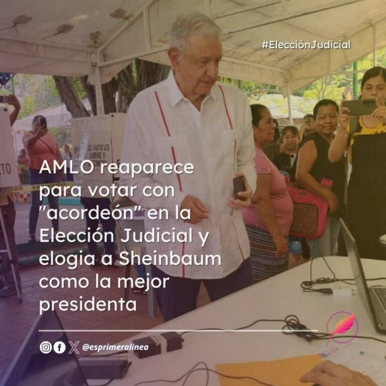 AMLO reaparece para votar con “acordeón” en la Elección Judicial y elogia a Sheinbaum como la mejor presidenta El expresidente Andrés Manuel López Obrador votó este 1 de junio de 2025 en Palenque, Chiapas, en la Elección Judicial,… 1 junio, 2025