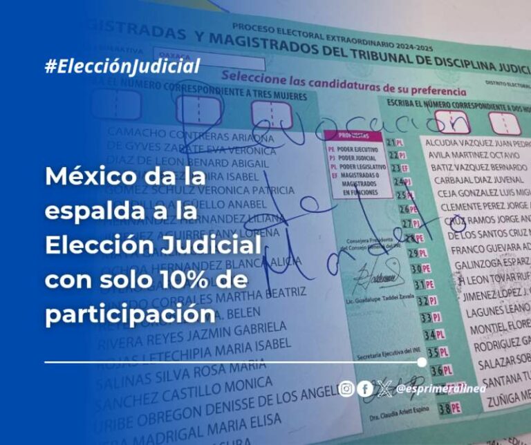 México da la espalda a la Elección Judicial con solo 10% de participación La Elección Judicial del 1 de junio de 2025 registró una participación de apenas 1 de cada 10 personas, de… 1 junio, 2025