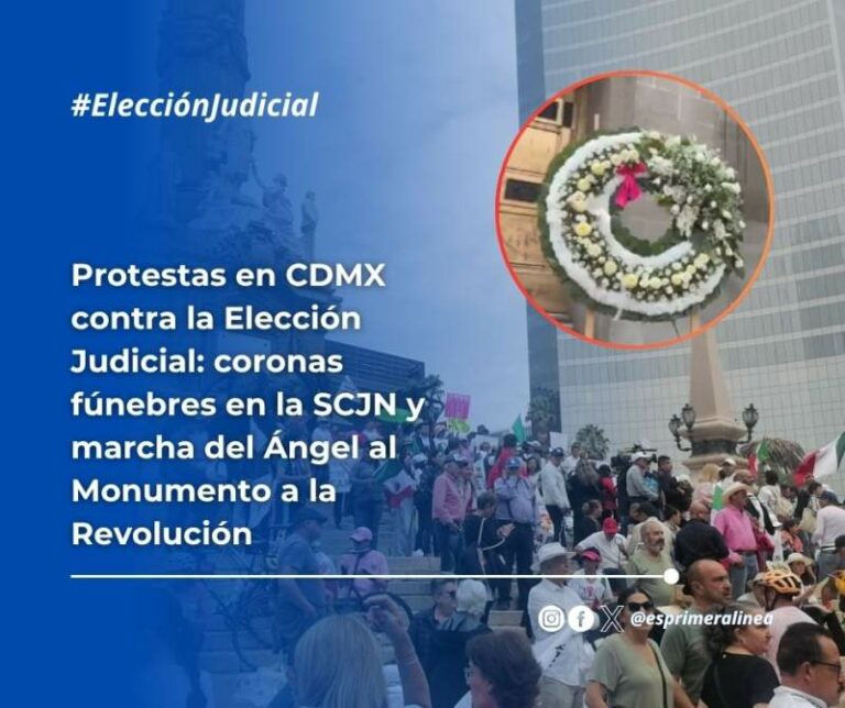 Protestas en CDMX contra la Elección Judicial: coronas fúnebres en la SCJN y marcha del Ángel al Monumento a la Revolución Este 1 de junio, manifestantes colocaron coronas fúnebres frente a la Suprema Corte y marcharon del Ángel de la Independencia… 1 junio, 2025