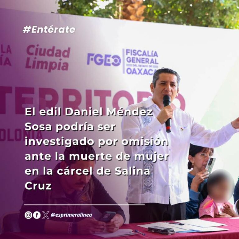El edil Daniel Méndez Sosa podría ser investigado por omisión ante la muerte de mujer en la cárcel de Salina Cruz El edil Daniel Méndez Sosa podría ser investigado por omisión ante la muerte de mujer en la cárcel de Salina… 15 septiembre, 2025