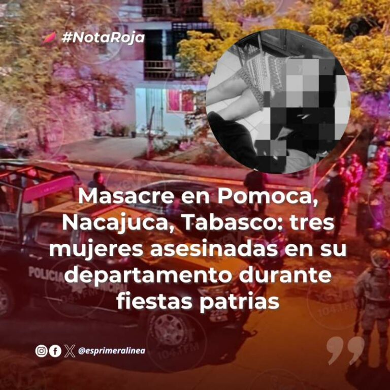 Masacre en Pomoca, Nacajuca, Tabasco: tres mujeres asesinadas en su departamento durante fiestas patrias Sicarios en motocicletas irrumpieron en un departamento de la Cerrada Tres del fraccionamiento Valle Real, en Pomoca, municipio de Nacajuca,… 15 septiembre, 2025