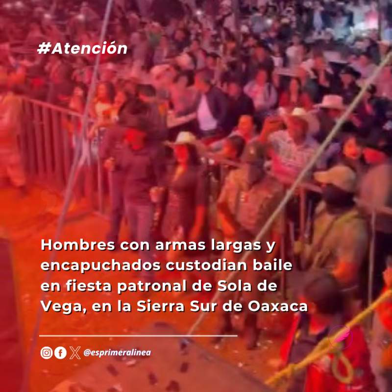 Hombres con armas largas y encapuchados custodian baile en fiesta patronal de Sola de Vega, en la Sierra Sur de Oaxaca