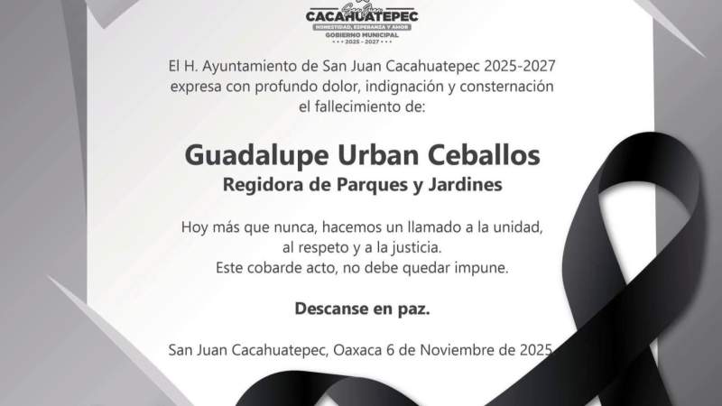 Fiscalía de Oaxaca establece líneas de investigación en torno a agresión en que perdió la vida funcionaria municipal de San Juan Cacahuatepec