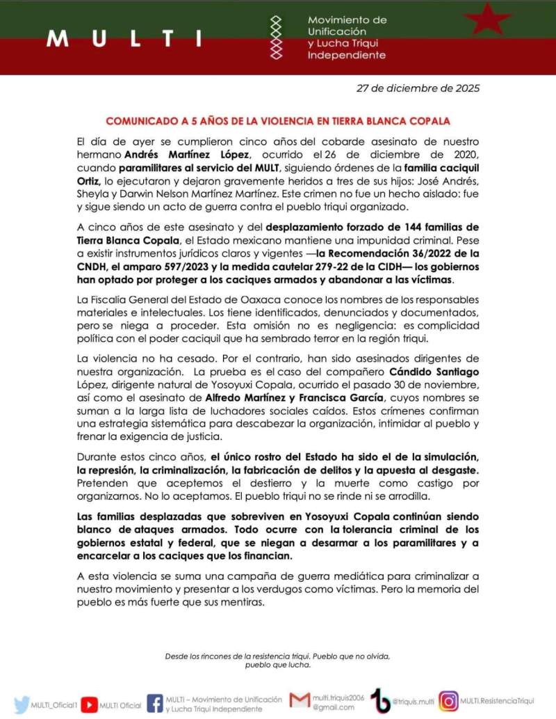 Sobre el incendio liquidado en Santiago Juxtlahuaca, que comenzó el 21 de diciembre, se informó que este quedó liquidado tras ocasionar una afectación de 35 hectáreas. Los reportes sobre la extinción fueron hechos durante las notificaciones vespertinas de ayer.