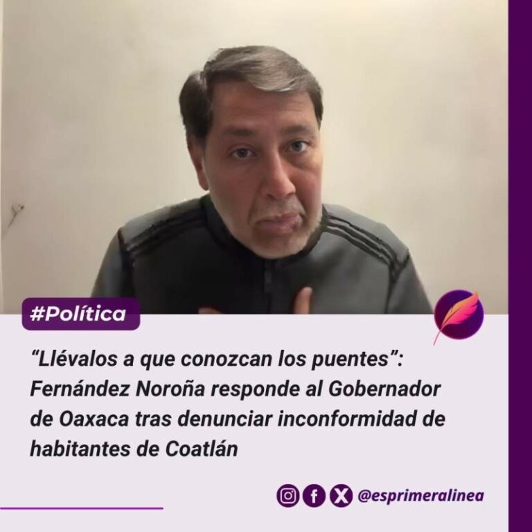 “Llévalos a que conozcan los puentes”: Fernández Noroña responde al Gobernador de Oaxaca tras denunciar inconformidad de habitantes de Coatlán El senador Gerardo Fernández Noroña respondió a las declaraciones del gobernador de Oaxaca, Salomón Jara, sosteniendo que existe un incumplimiento… 18 diciembre, 2025