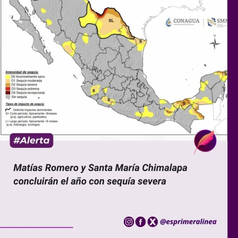 Matías Romero y Santa María Chimalapa concluirán el año con sequía severa La Comisión Nacional del Agua reportó que, al cierre de 2025, los municipios de Matías Romero y Santa María Chimalapa… 19 diciembre, 2025