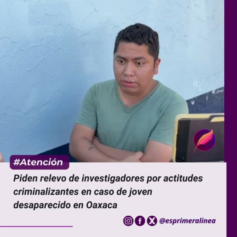 Piden relevo de investigadores por actitudes criminalizantes en caso de joven desaparecido en Oaxaca A casi seis meses de la desaparición de Erick Jair Pérez Limón, el activista Joaquín Galván exigió el relevo del… 18 diciembre, 2025