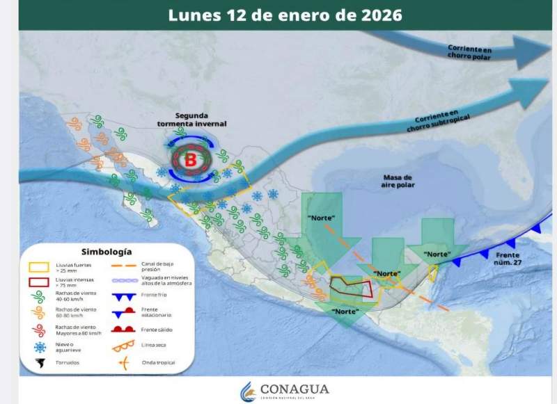 La Coordinación Estatal de Protección Civil de Oaxaca (CEPCO) alertó por el ingreso del frente frío número 27, que traerá mezclas invernales de viento, descenso en la temperatura, lluvia y oleaje elevado desde sábado hasta inicios de la próxima semana.