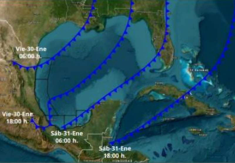 La dependencia advirtió que el frente frío 32 “saldrá mañana viernes” sobre el noroeste del Golfo de México y que avanzará de forma explosiva y rápida.