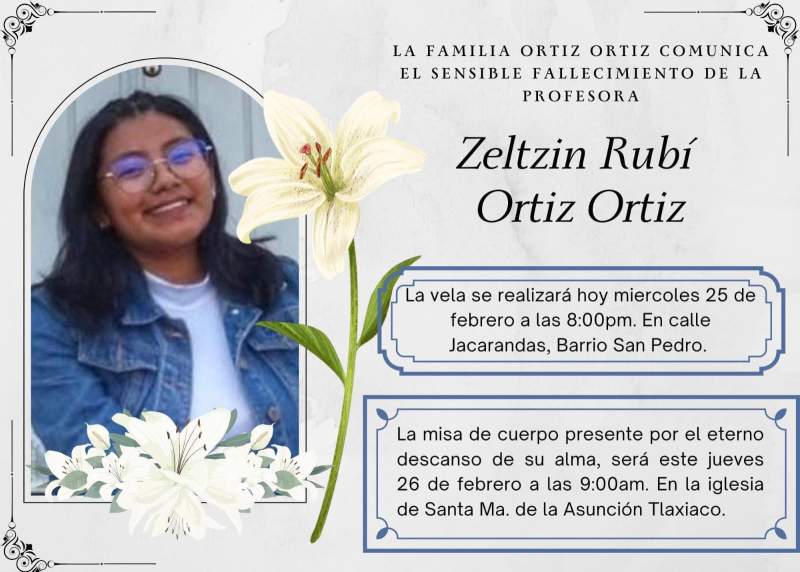 La comunidad de Santa María Lachichina, en el municipio de San Juan Yaeé, se encuentra conmocionada tras el feminicidio de la profesora Zeltzin Rubí Ortiz, originaria de San Pedro Tlaxiaco.