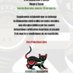 “Gracias a la presión mediática, a su solidaridad y apoyo, Diego y César fueron liberados anoche, 10 de marzo”, indicó la Asamblea pro Palestina.