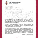 Hago público que los responsabilizo a ellos, a su cabildo y a las personas que durante años nos han agredido física, psicológica y patrimonialmente, de cualquier daño que pudieran ocasionarnos a mi familia y a mí.