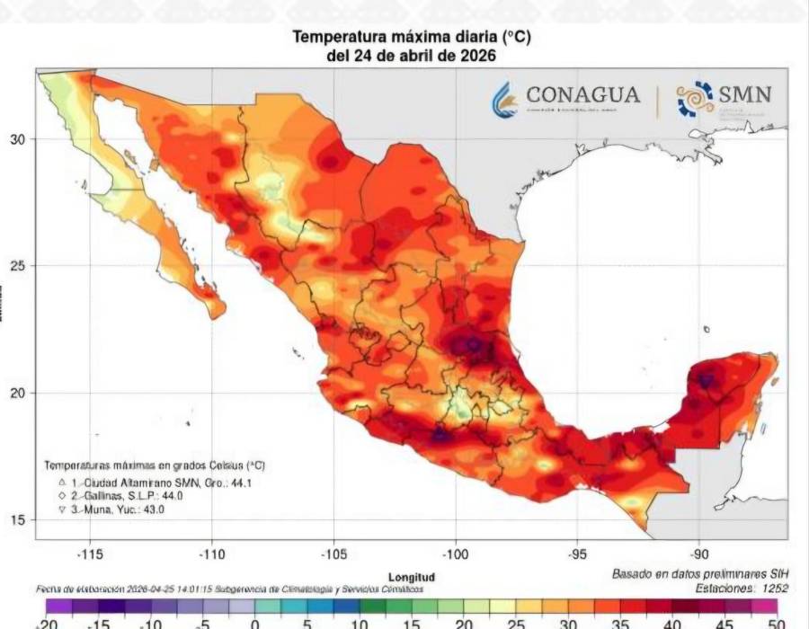 “Las temperaturas oscilarán de los 35 hasta los 40 grados centígrados, pero la sensación térmica puede llegar a los 45 grados; desde luego, en forma puntual, pueden hacer temperaturas mayores de 42 hasta 45 grados, pero no son generalizadas; por ejemplo, Boquilla, Nejapa de Madero, en Cuicatlán, en San Juan Lalana y en algunos otros municipios colindando con Guerrero”, indicó el especialista.