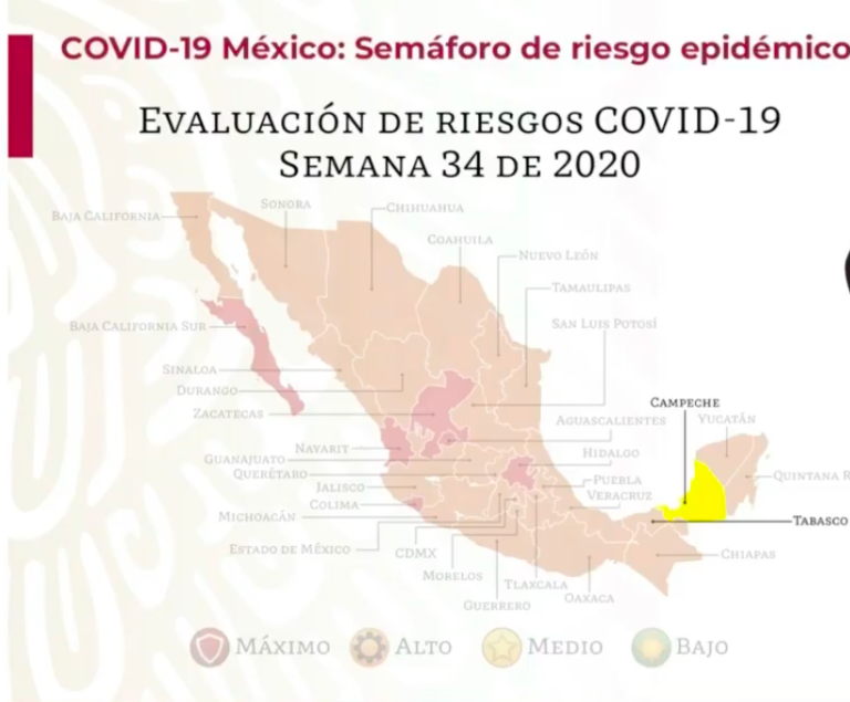 Por primera vez un estado en amarillo: Campeche Las autoridades de Salud informaron que el semáforo epidemiológico COVID-19 pone por primera vez un estado en color amarillo y corresponde a Campeche. Ricardo… 14 agosto, 2020