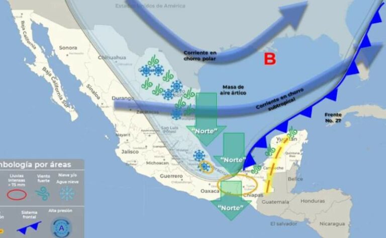 Frente frío 27 trae heladas, lluvias intensas y temperaturas de -5 a -10 °C a México El frente frío No. 27 avanza sobre el oriente y sureste de México, generando lluvias intensas en Veracruz, Tabasco, Oaxaca… 16 enero, 2024
