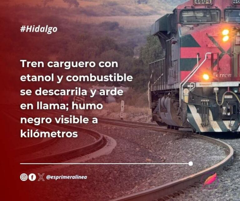Hidalgo: Tren carguero con etanol y combustible se descarrila y arde en llama; humo negro visible a kilómetros Un tren de carga operado por Ferromex se descarriló esta mañana en La Loma, Tepetitlán, Hidalgo, provocando la explosión de… 1 noviembre, 2025
