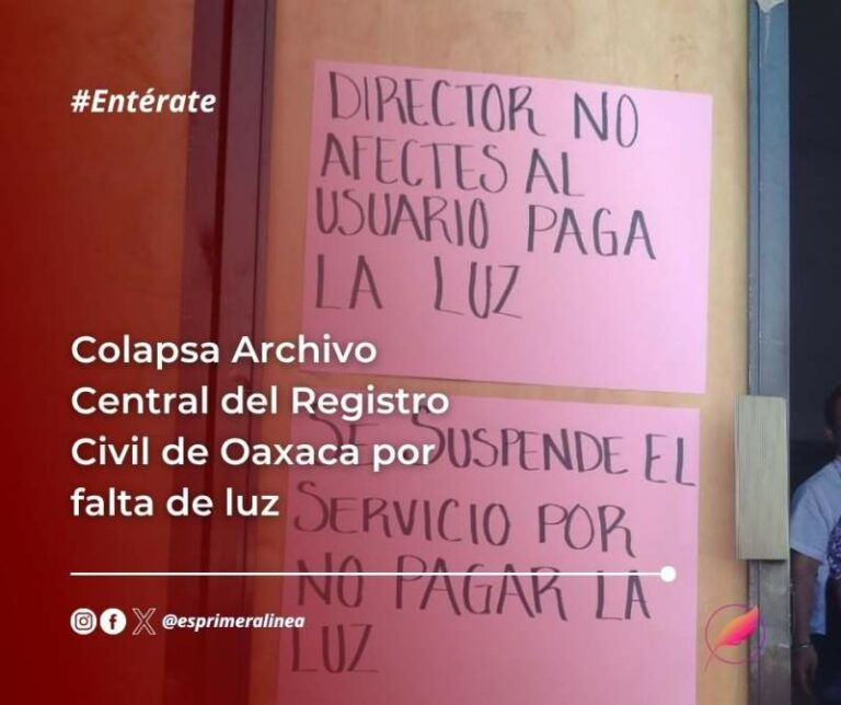 Colapsa Archivo Central del Registro Civil de Oaxaca por falta de luz Colapsa Archivo Central del Registro Civil de Oaxaca por falta de luz 1 octubre, 2025
