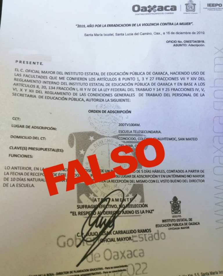 Advierte IEEPO sobre órdenes de adscripción falsas • Se detectaron nuevos casos de documentación falsa, por lo cual se iniciarán los procedimientos correspondientes Oaxaca de Juárez, Oax.… 12 enero, 2020