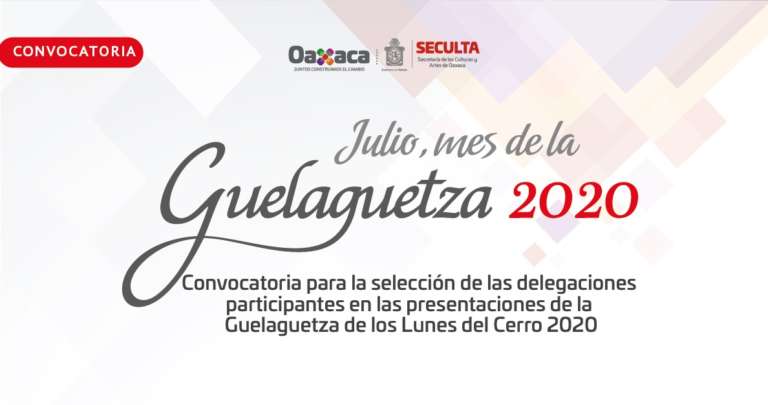 Emite Seculta convocatoria para la Guelaguetza 2020 La convocatoria contiene las bases para la selección de las Delegaciones participantes en la Guelaguetza de este año Oaxaca de… 8 enero, 2020