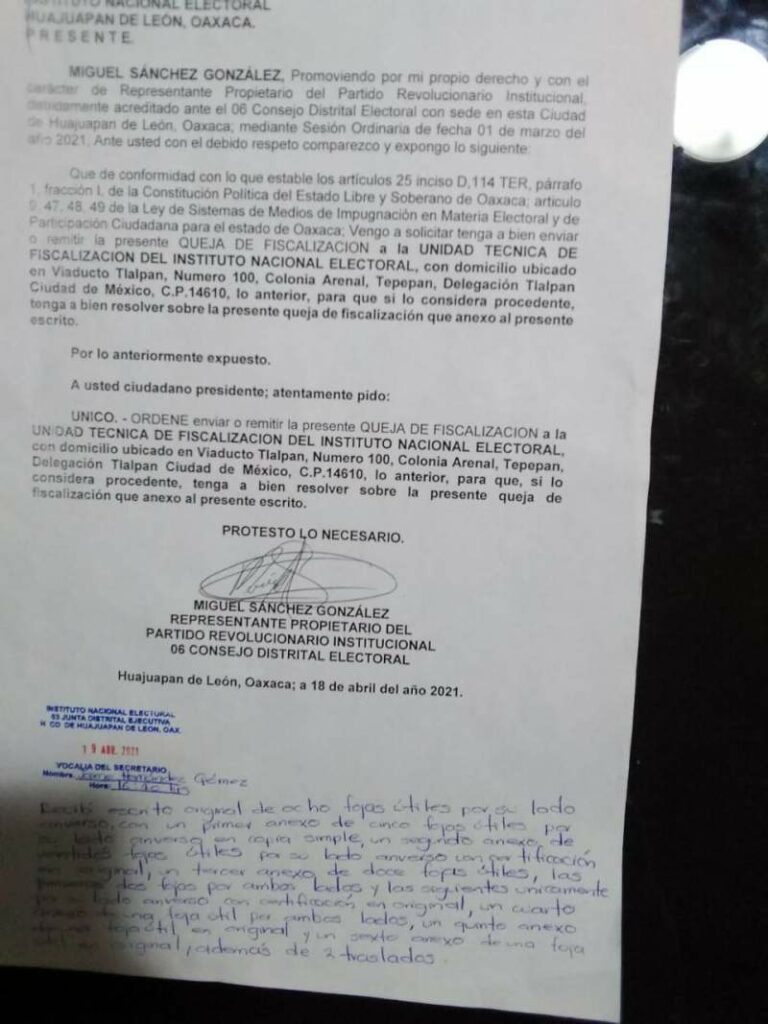 Interponen queja de fiscalización contra candidata de Morena en Huajuapan de León El representante del PRI ante el INE, Miguel Sánchez González interpuso una queja de fiscalización contra la candidata a diputada… 24 abril, 2021