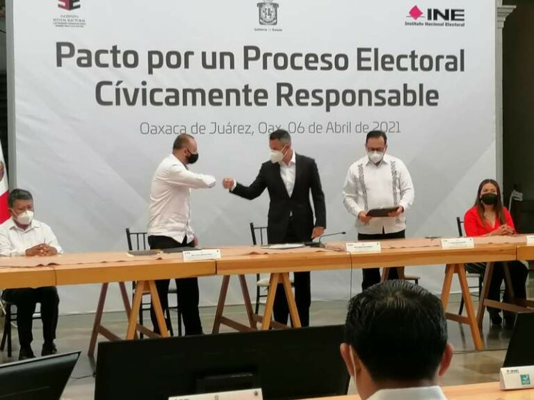 Va Oaxaca por elecciones pacíficas; firman pacto por Proceso Electoral Cívicamente Responsables Autoridades estatales y electorales firmaron el pacto por un Proceso Electoral Cívicamente Responsable para garantizar un proceso en paz y… 6 abril, 2021