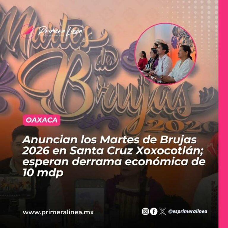Anuncian los Martes de Brujas 2026 en Santa Cruz Xoxocotlán; esperan derrama económica de 10 mdp La presidenta municipal de Santa Cruz Xoxocotlán, Nancy Benítez Zárate, presentó oficialmente la edición 2026 de los Martes de Brujas,… 9 febrero, 2026