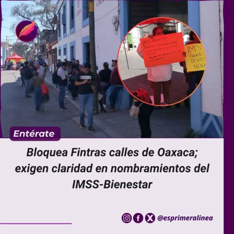 Bloquea Fintras calles de Oaxaca; exigen claridad en nombramientos del IMSS-Bienestar Integrantes de la Fuerza Independiente de Trabajadores de la Salud (Fintras) cerraron la circulación en el centro de la capital… 9 febrero, 2026