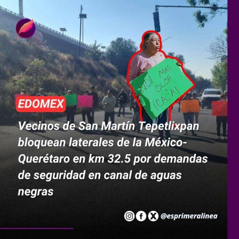 Vecinos de San Martín Tepetlixpan bloquean laterales de la México-Querétaro en km 32.5 por demandas de seguridad en canal de aguas negras Habitantes de San Martín Tepetlixpan, Cuautitlán Izcalli, bloquearon esta mañana del 9 de febrero de 2026 los carriles laterales de… 9 febrero, 2026