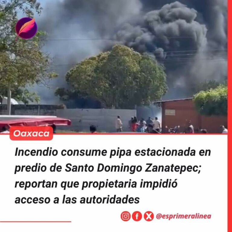 Incendio consume pipa estacionada en predio de Santo Domingo Zanatepec; reportan que propietaria impidió acceso a las autoridades