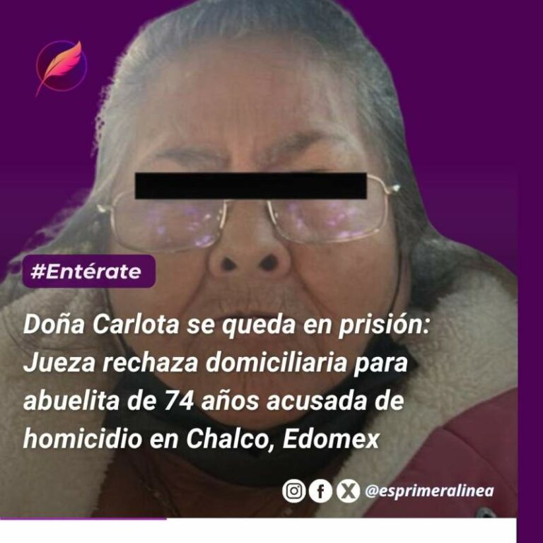 Doña Carlota se queda en prisión: Jueza rechaza domiciliaria para abuelita de 74 años acusada de homicidio en Chalco, Edomex Una jueza del Poder Judicial del Estado de México negó este 6 de noviembre de 2025 la prisión domiciliaria a… 6 noviembre, 2025