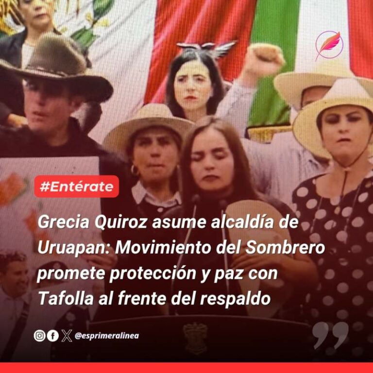 Grecia Quiroz asume alcaldía de Uruapan: Movimiento del Sombrero promete protección y paz con Tafolla al frente del respaldo Grecia Quiroz rindió protesta este 5 de noviembre como nueva alcaldesa de Uruapan, Michoacán, tras el asesinato de su esposo… 5 noviembre, 2025