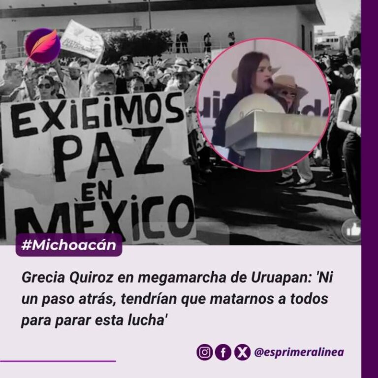 Grecia Quiroz en megamarcha de Uruapan: ‘Ni un paso atrás, tendrían que matarnos a todos para parar esta lucha’ En la megamarcha por la Paz y la Justicia en el Paseo Lázaro Cárdenas de Uruapan, Michoacán, este 7 de… 7 noviembre, 2025