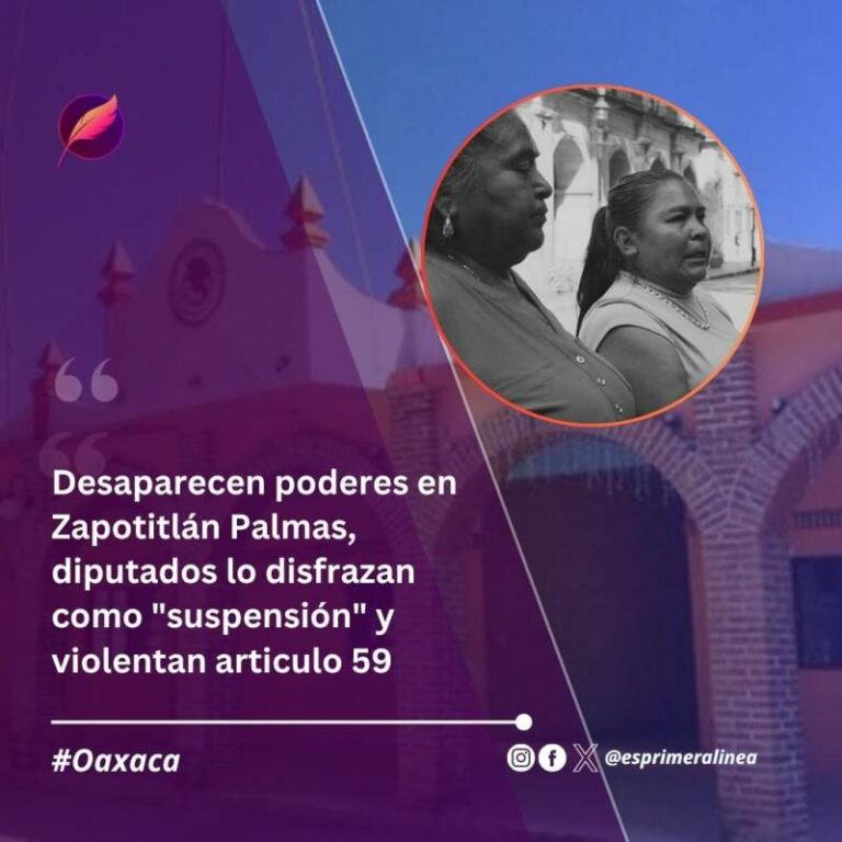 Desaparecen poderes en Zapotitlán Palmas, diputados lo disfrazan como “suspensión” y violentan articulo 59 Desaparecen poderes en Zapotitlán Palmas, diputados lo disfrazan como "suspensión" y violentan articulo 59 20 junio, 2025