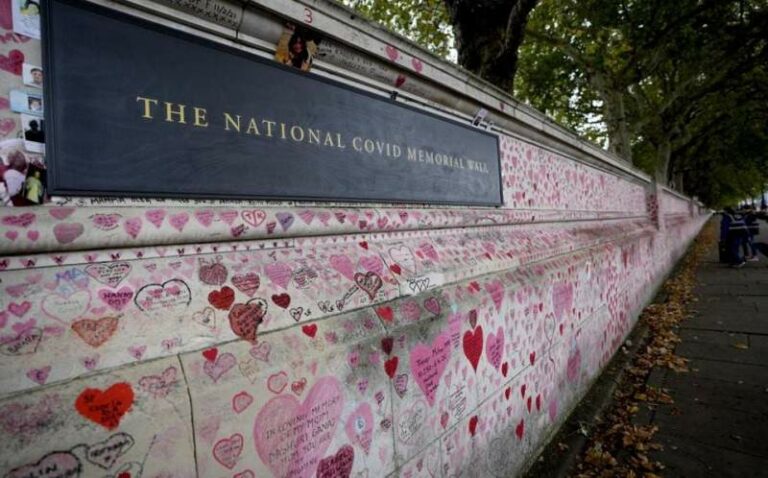 ¡Con 150 mil corazones! En Reino Unido, colocan muro conmemorativo para muertos por covid Puede tomar entre cinco y diez minutos caminar por el muro conmemorativo adornado con corazones en Londres 30 octubre, 2021