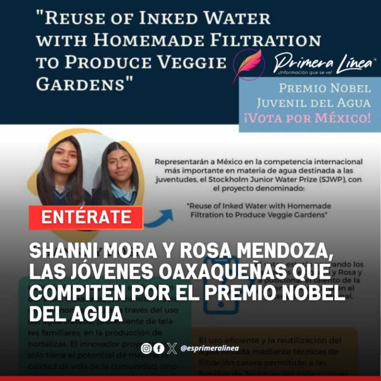Shanni Mora y Rosa Mendoza, las jóvenes oaxaqueñas que compiten por el Premio Nobel del Agua La competencia se realiza en Estocolmo, Suecia. Ambas crearon un proyecto que consiste en la reutilización del agua usada en… 25 agosto, 2024