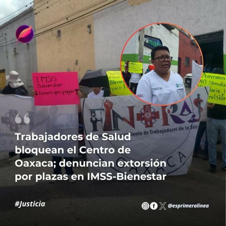 Trabajadores de Salud bloquean el Centro de Oaxaca; denuncian extorsión por plazas en IMSS-Bienestar Integrantes de la Fuerza Independiente de Trabajadores de Salud (FITS), afiliados a IMSS-Bienestar, bloquearon la 20 de Noviembre y Moctezuma… 17 octubre, 2025