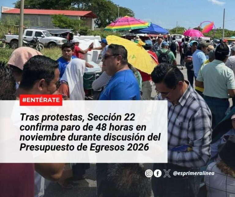 Tras protestas, Sección 22 confirma paro de 48 horas en noviembre durante discusión del Presupuesto de Egresos 2026 Yenny Araceli Pérez Martínez, secretaria general de la Sección 22 de la CNTE, anunció un paro de 48 horas en… 17 octubre, 2025