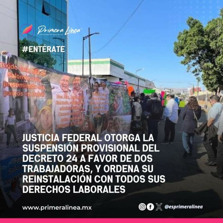 Justicia federal otorga la suspensión provisional del decreto 24 a favor de dos trabajadoras, y ordena su reinstalación con todos sus derechos laborales Justicia federal otorga la suspensión provisional del decreto 24 a favor de dos trabajadoras, y ordena su reinstalación con todos… 19 enero, 2025
